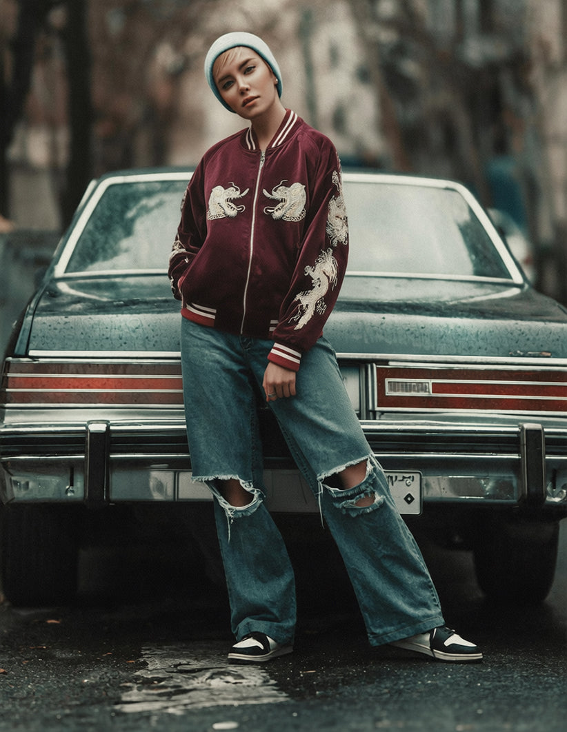 【L】Velvet Dragon Sukajan Jacket – Wine Red Embroidered Yokosuka Japanese Bomber