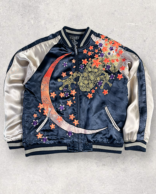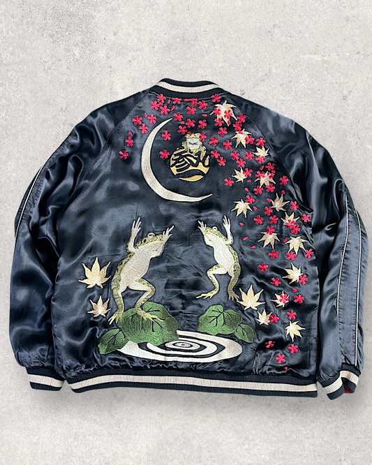 【XXL】Rare Oversized Sukajan Jacket – Frogs, Moon & Maple Leaves Embroidery / Reversible Japanese Souvenir Jacket