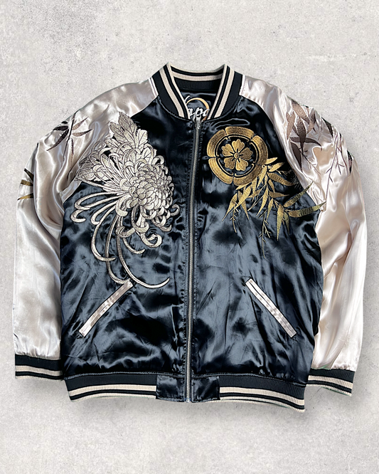 [XL ]Rare Reversible Sukajan by MIYABI MUSUBI – Embroidered with Dragon, Sakura, Phoenix & More