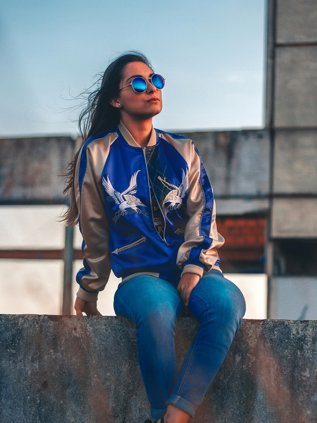 • 【L】Gold & Silver Gradient Dragon / Indigo Cloud Dragon – Japanese Embroidered Bomber