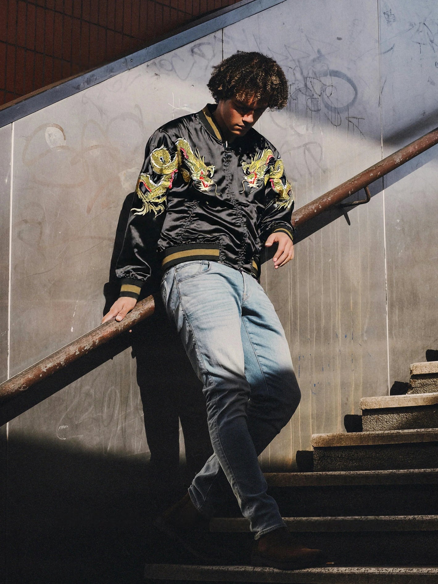 • Imposing Dragon Embroidery on a Reversible Sukajan