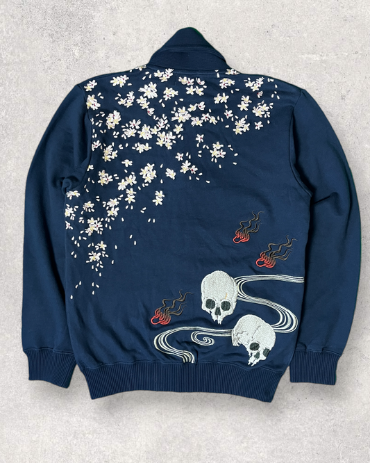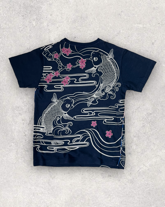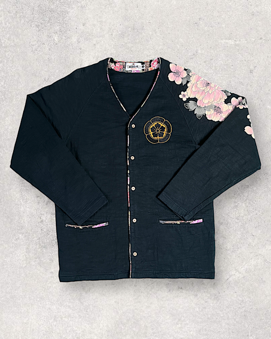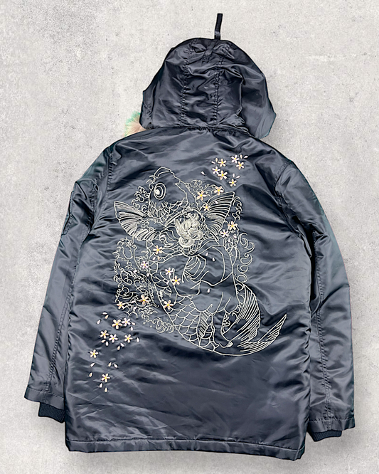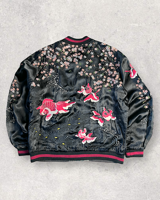 [L] Lovely Cherry Blossom & Goldfish Reversible Sukajan - Embroidered Japanese Style | Vintage