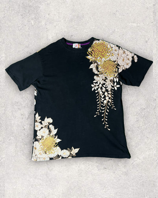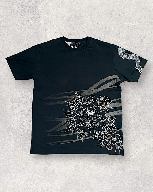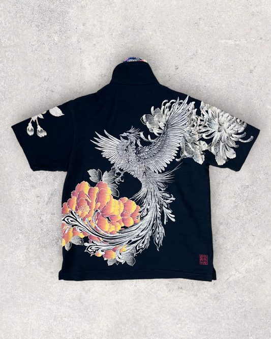 Kacho-fu-getsu Luxury Embroidery Japanese Pattern Phoenix Short-sleeved Vintage t-shirt XL Size