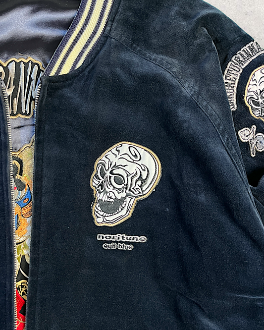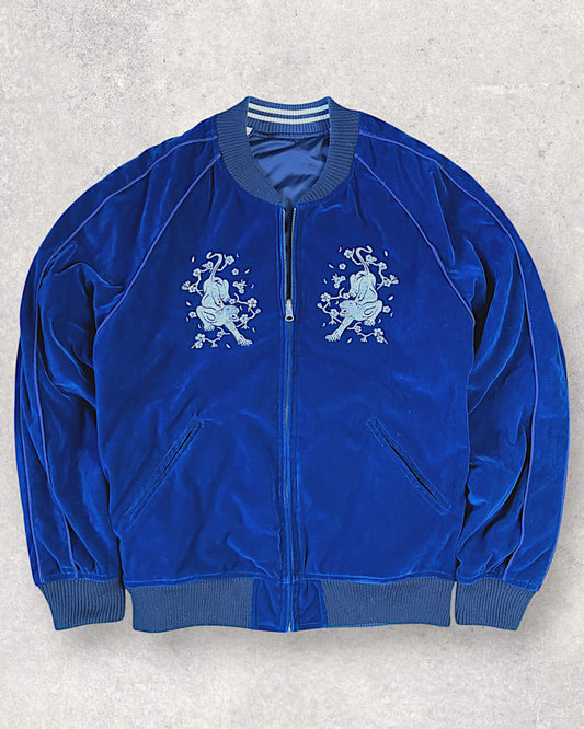 [L] Reversible Blue Velour Sukajan by VANQUISH – Mt. Fuji & Puma Embroidery | Unisex Vintage Jacket