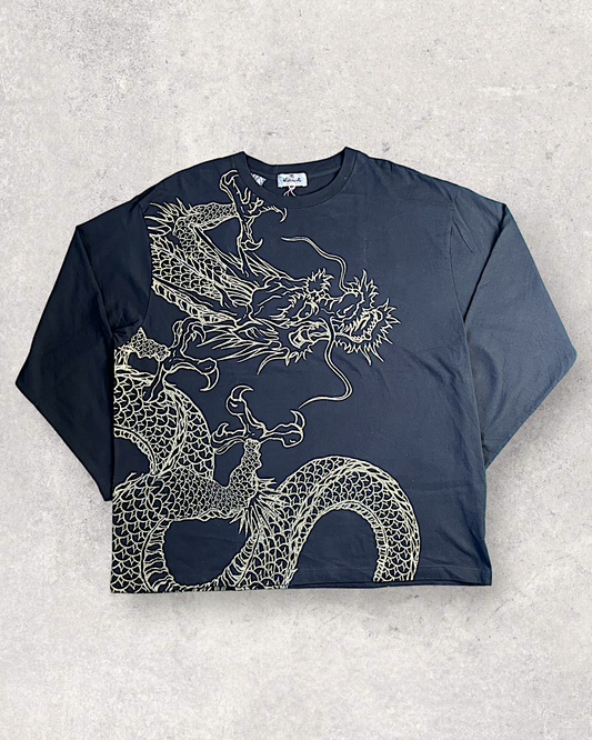 Japanese Transitional design Vintage T-shirts long sleave black dragon