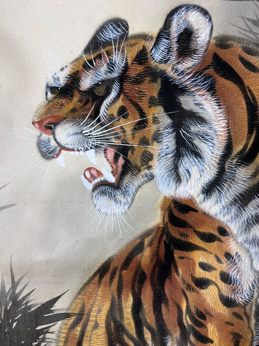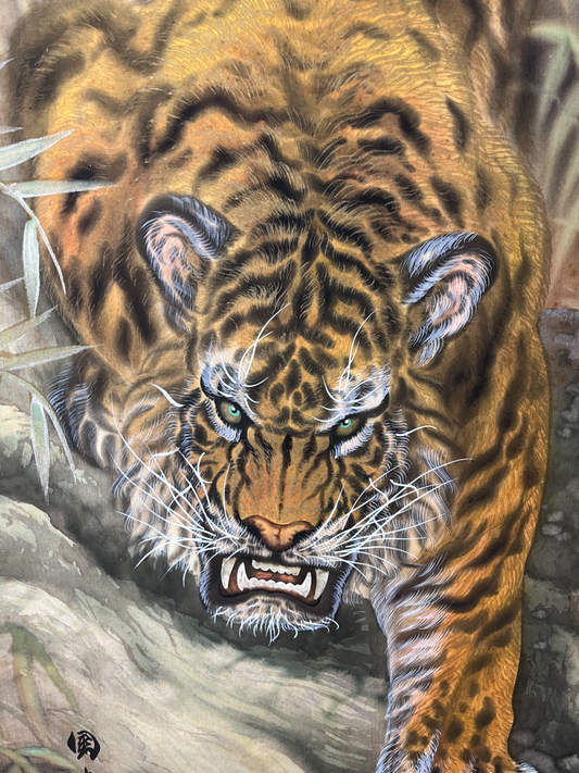 [Authentic] Kunimitsu 'Fierce Tiger' Scroll – Large Japanese Painting of a Mythical Tiger