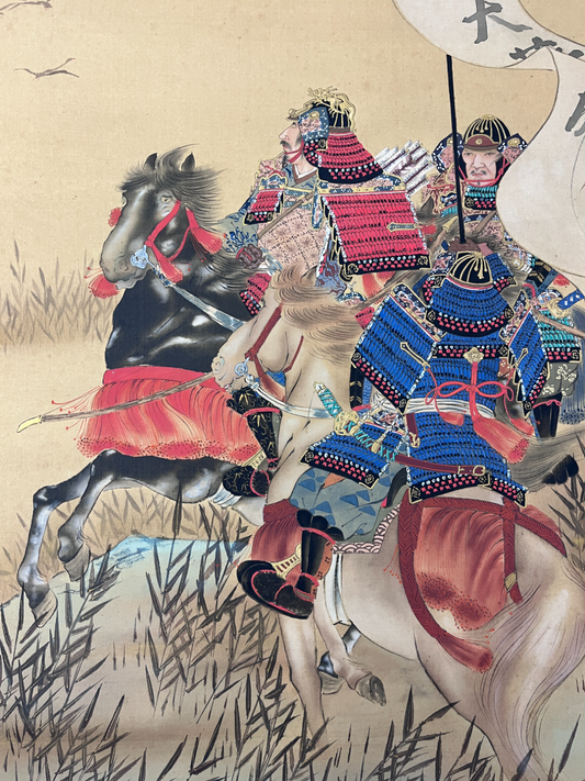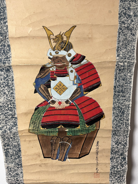 [Authentic]Edo Period Japan Tosa Mitsusada Hanging Scroll – Warrior Painting of Armor & Helmet – Exquisitely Colored Hand-Painted on Paper