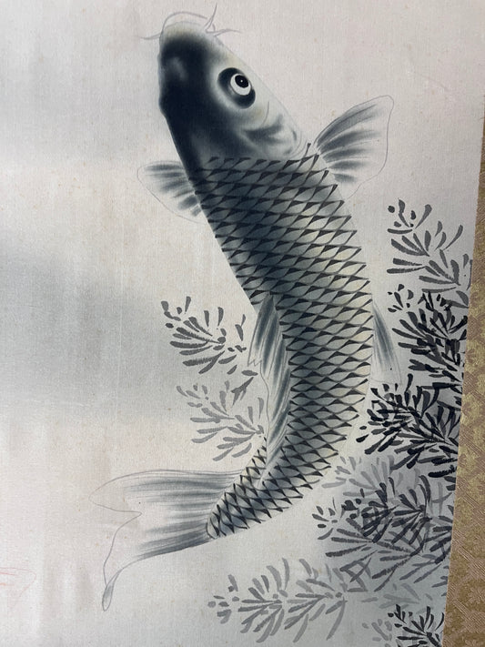 【Replica】 Fuyuhiko "Koi Climbing the Waterfall" — A Powerful Hanging Scroll for Success and Prosperity
