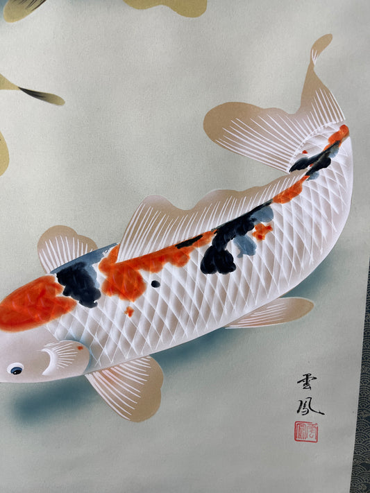[By Unpo Kawata] Auspicious Red and White Carp Painting - A Masterpiece Inviting Harmony and Advancement