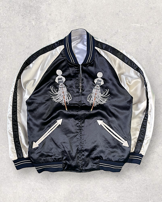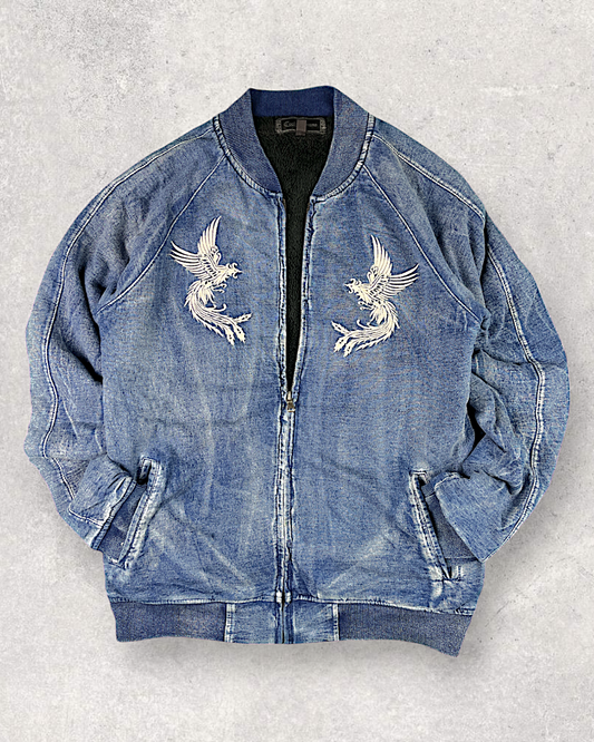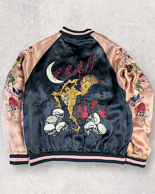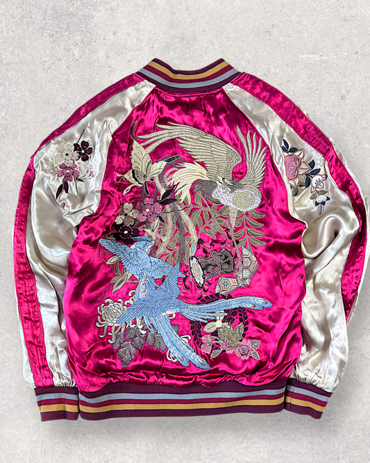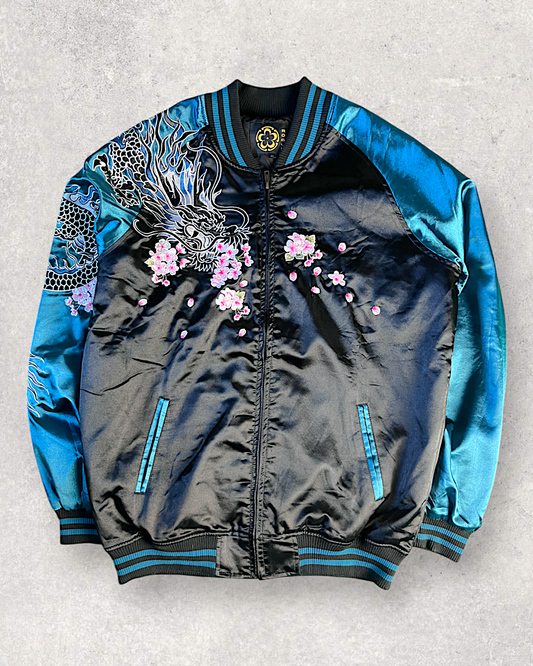 [XL ]Rare Reversible Sukajan by MIYABI MUSUBI – Embroidered with Dragon, Sakura, Phoenix & More
