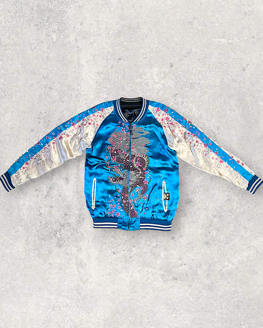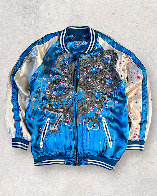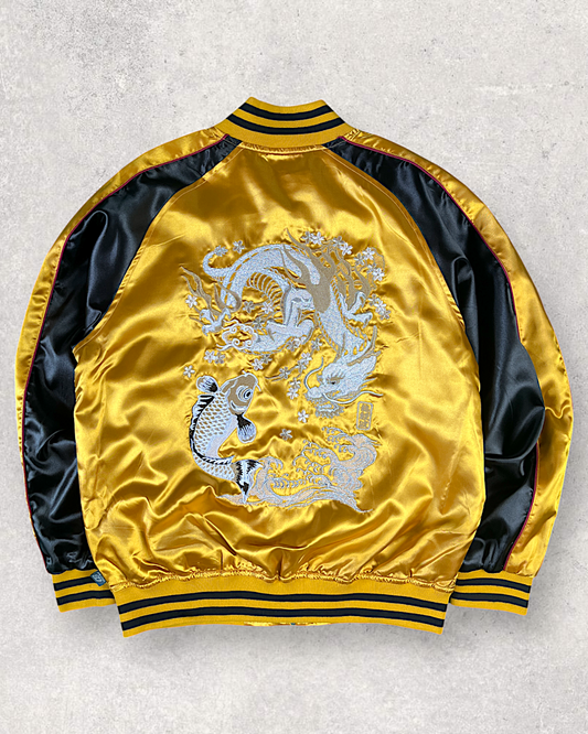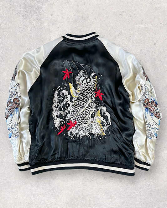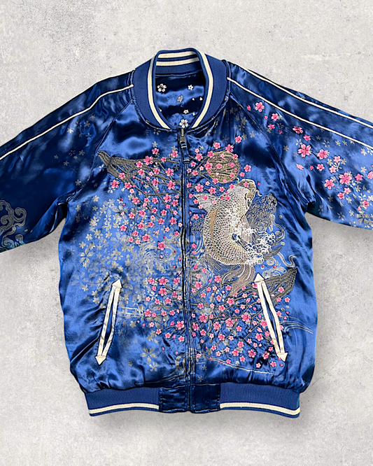 [M] Reversible Japanese Sukajan - Koi & Sakura Design / Dragon & Tiger Back| Vintage