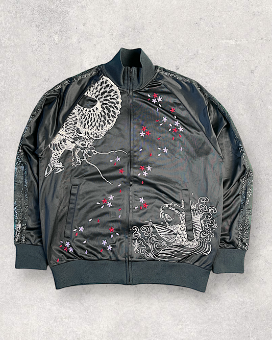 [L] Rare Dragon & Koi Track jacket - Exquisite Japanese Embroidery| Vintage