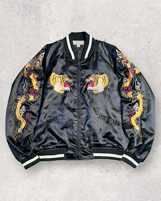 [L] Japanese Dragon & Tiger Sukajan - Powerful Embroidery | Vintage