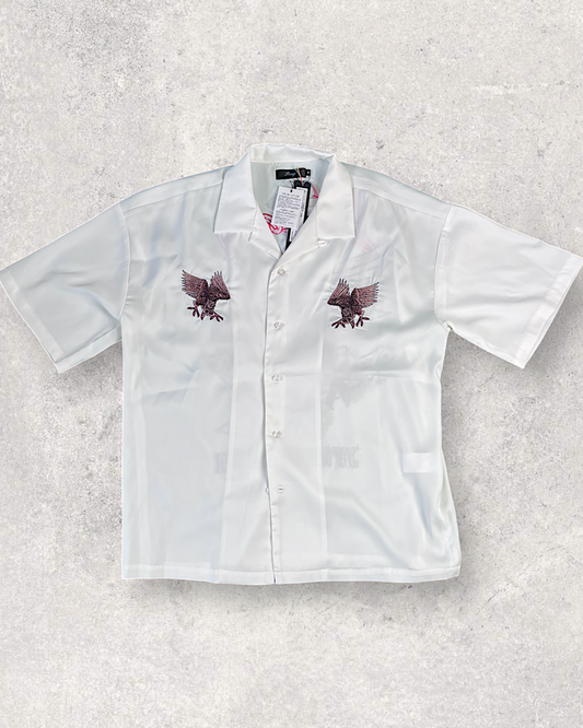 [46]【Unique】Hawk Embroidered Short Sleeve Shirt Men's Japan Logo Souvenir Jacket Style White Poly Blend