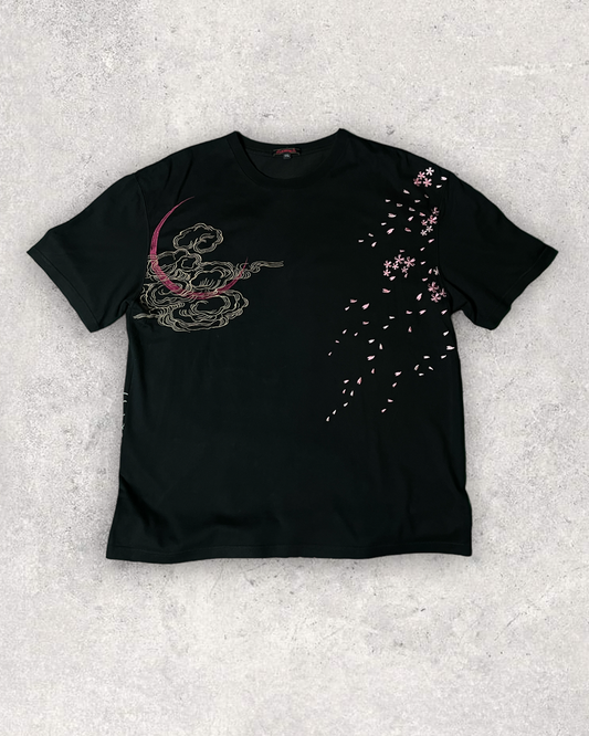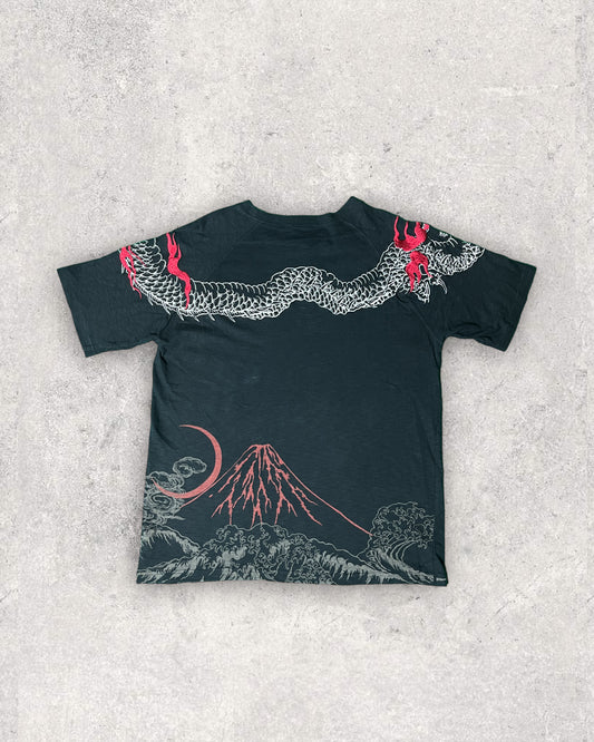 SATORI Japanese Pattern Ryu, Wave, Red Fuji, Crescent Moon Embroidery Short-sleeved | Vintage T-shirt