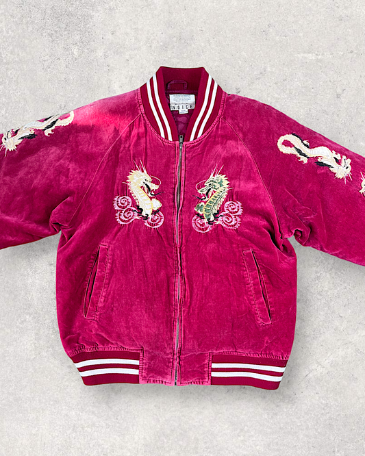 [L] [MODERN VOICE] Embroidery Red dragon velor sukajan 90s | Vintage jacket
