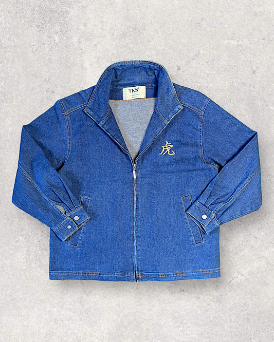 [L][Rare and Bespoke] TKS2 [overwhelming presence] Sukajan Blouson Tiger Tiger Denim Jacket Embroidery Stretch Stretch Zip-up M-L Equivalent | Vintage