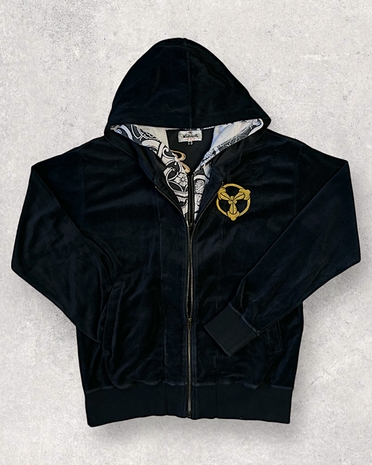 [L] KARAKURI-TAMASHII Fleece Hoodie Dragon Embroidery Double zipper velour | Vintage