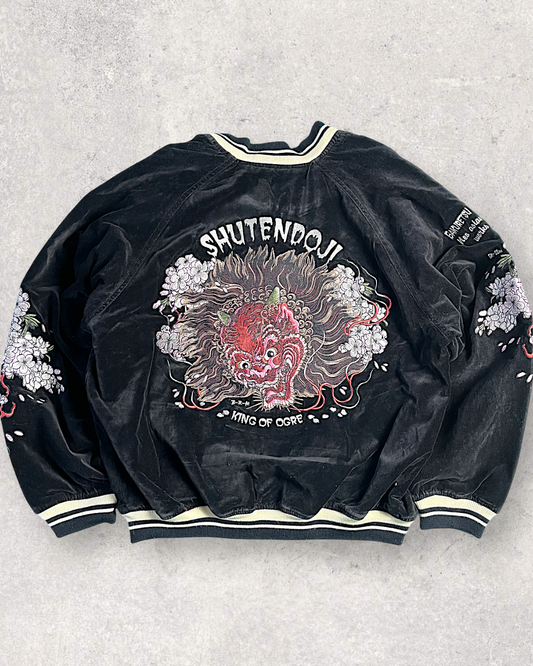 【L】 Rare Reversible Velour Sukajan – SHUTENDOJI “King of Ogre” & RYUUTARO Dragon Tattoo Jacket
