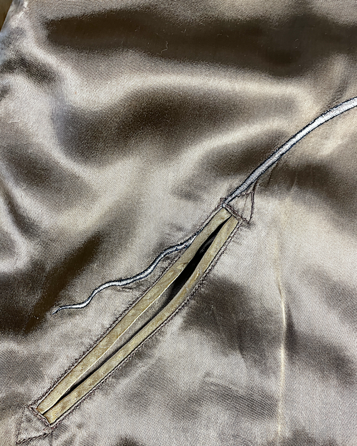 This jacket is pre-owned (used), but the embroidery and satin surface remain in very good condition with plenty of shine and texture.